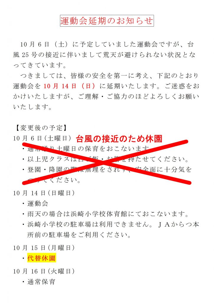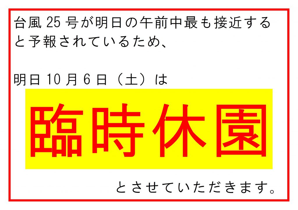 10月6日(土)台風接近に伴う臨時休園のお知らせ