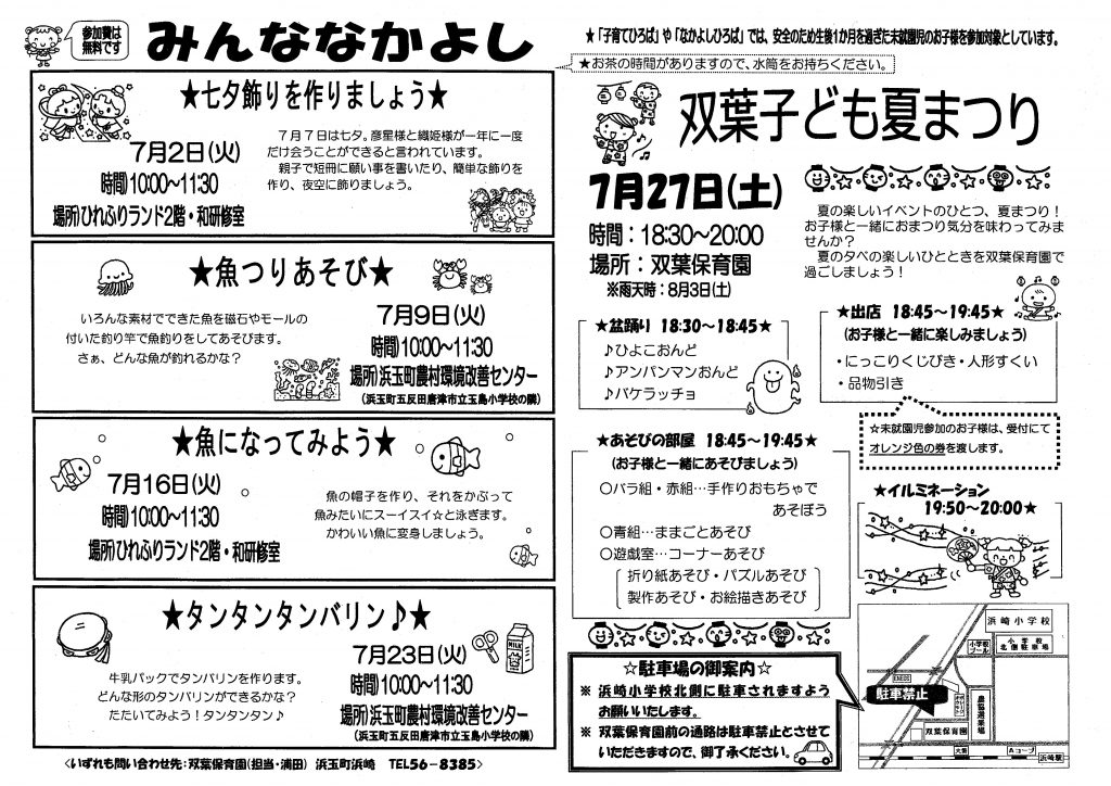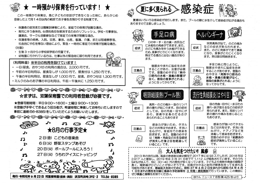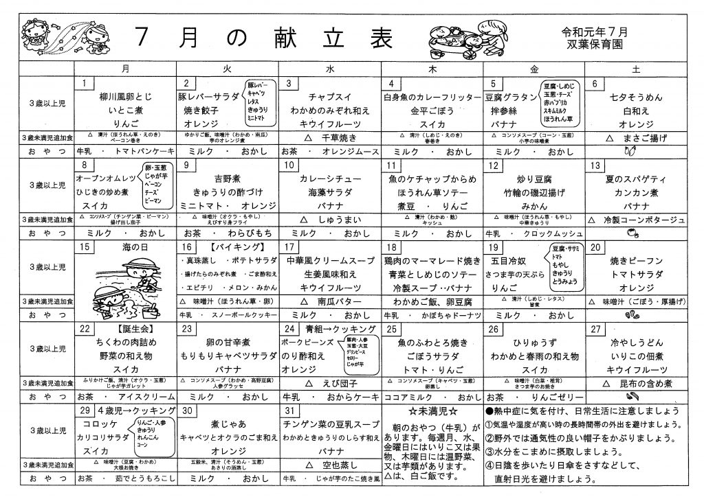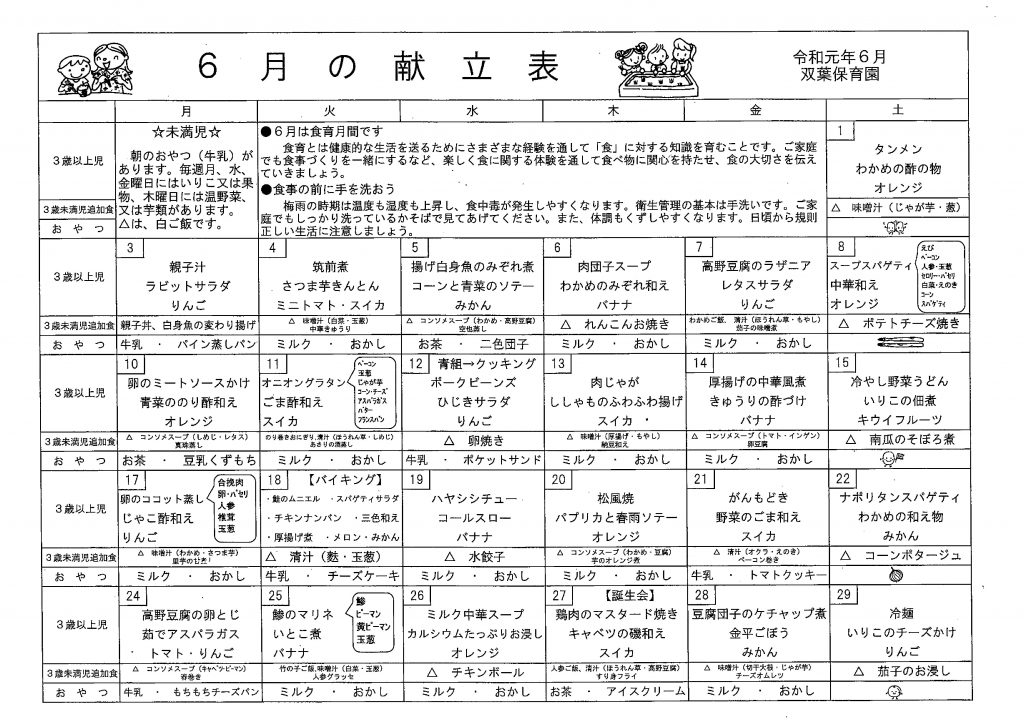 みんななかよし 7月号 2019.6.28 みんななかよし 7月号 【PDFファイル 272KB】 7月の献立表 2019.6.28 7月の献立表 【PDFファイル 108KB】 子育てひろば(6月4・11・18・25日)と育児講座(6月5日)のご案内 2019.6.1 子育てひろば(6月4・11・18・25日)と育児講座(6月5日)のご案内 【PDFファイル 417KB】 6月の献立表 2019.6.1 6月の献立表 【PDFファイル 86.5KB】