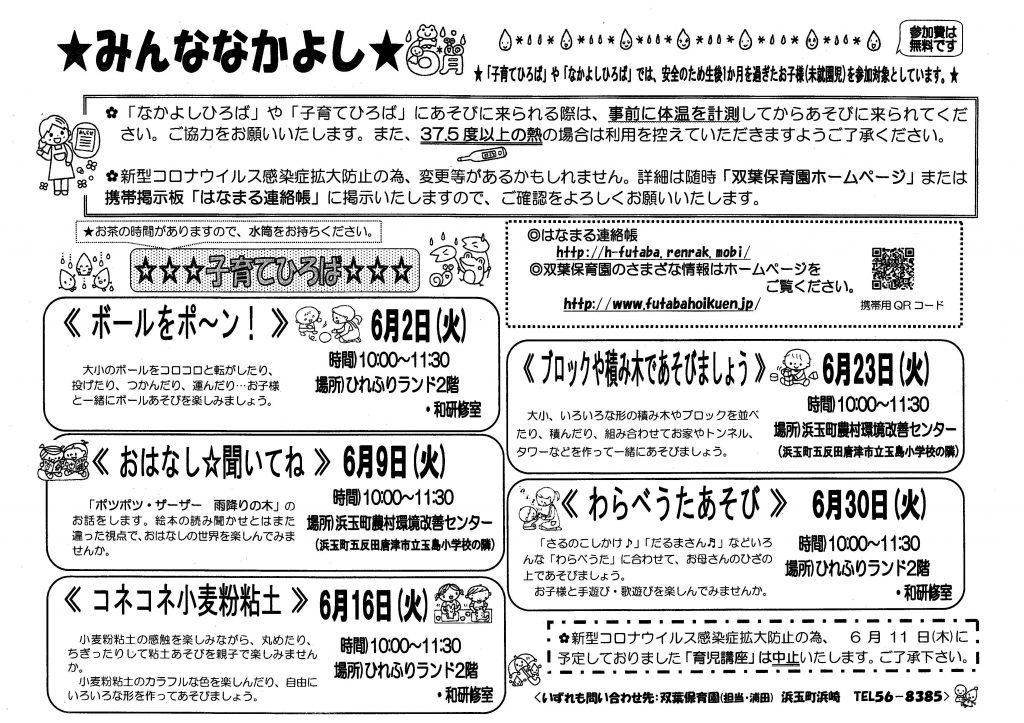 新型コロナウイルス感染症拡大防止の為、「子育てひろば」および「なかよしひろば」は本日4月10日(金)より5月30日(土)まで臨時休業させていただきます。ご了承ください。