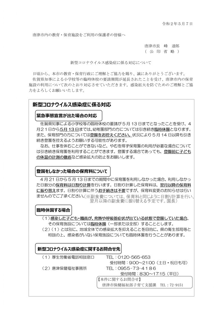 新型コロナウイルス感染症に係る対応について(5月7日)
