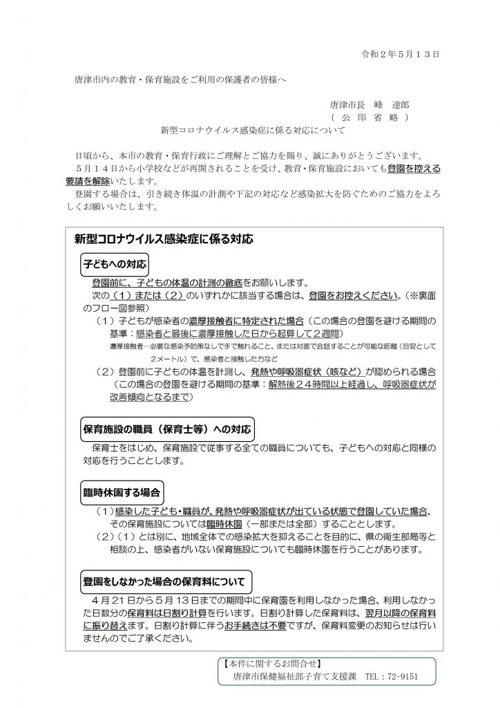 新型コロナウイルス感染症に係る対応について(5月13日)