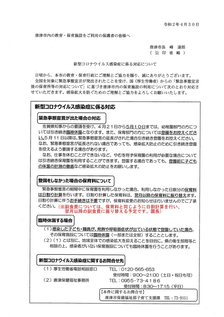 新型コロナウイルス感染症に係る対応について(4月30日)