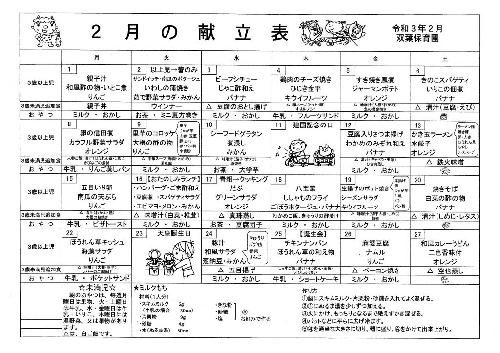 2月の献立表